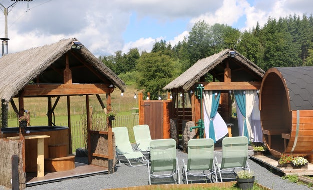 Terrasse 50m² - Roulotte 55 m² - Espace welness 40m² avec wc et douche extérieure.